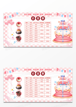 粉色简约生日蛋糕价目表宣传展板