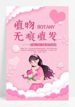 粉色剪纸立体美女毛发种植头发医美海报宣传植发设计