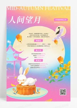 粉色渐变弥散风2025中秋节月亮节日活动月饼海报