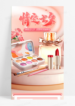 橘粉色高端清新夏日美丽七夕情人节美妆活动ui手机长图