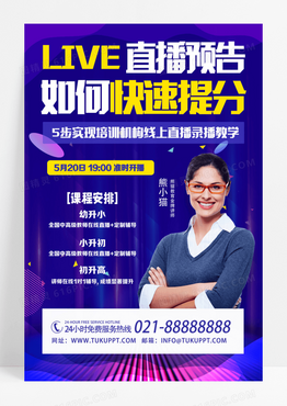 蓝色简约直播预告如何快速提分线上直播海报设计
