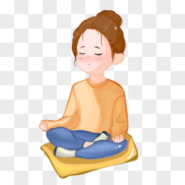 卡通手绘小女孩在瑜伽垫上冥想素材