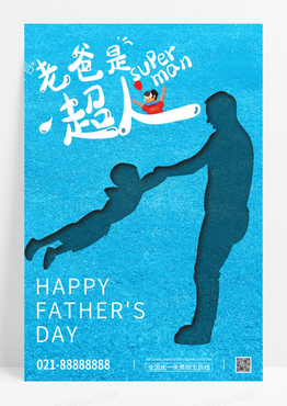 蓝色渐变父亲节父爱如山海报父亲节宣传