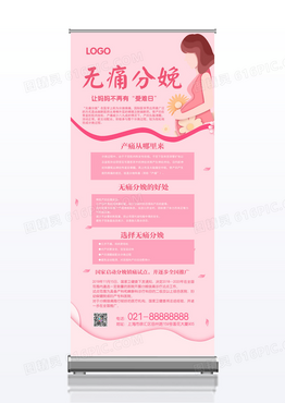 粉色紫色简约母婴无痛分娩妇产科X展架