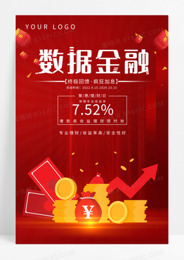 红色福袋金币大气简约手绘数据金融理财海报金钱树金融海报素材图片
