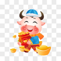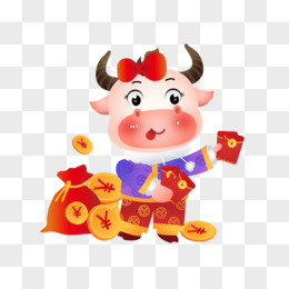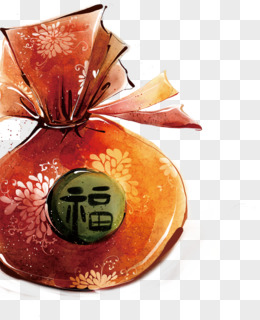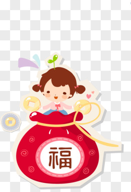 一组手绘免抠新年贴纸套图之兔年福袋素材