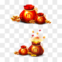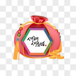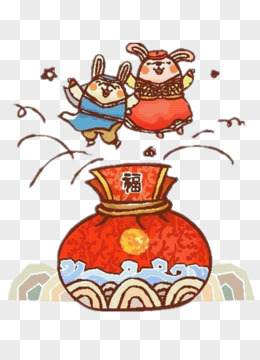 卡通手绘马年指路牌和坐在大福袋的小马免抠元素