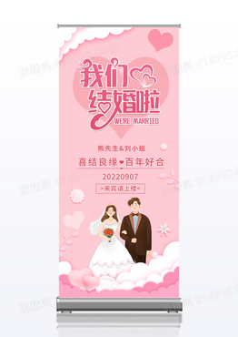 简约粉色新婚夫妇风格浪漫简约婚礼迎宾易拉宝