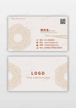 黄色中国风中式圆形线条餐饮餐饮名片美食名片