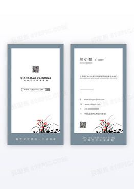 大气复古典雅中国风工笔画竖版名片设计