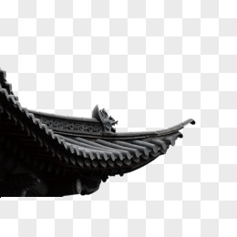 手绘水墨屋檐素材