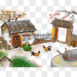 手绘水墨复古风农村农家乐农家小院