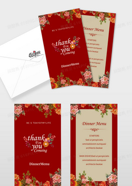 红色复古花朵英文贺卡酒红色复古贺卡设计