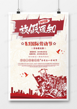 时尚黄红复古放假通知5.1海报