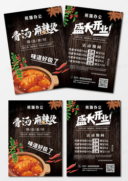 黑色复古木纹骨汤麻辣烫宣传单海报菜单