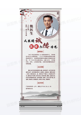 复古人物介绍中医专家介绍宣传展架易拉宝中医简介
