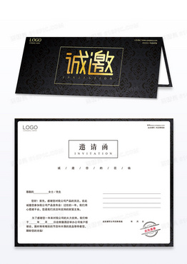 复古黑金花纹纹理质感家居商务邀请函