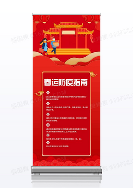 春运防疫指南红色复古邮票风宣传展架设计春运疫情