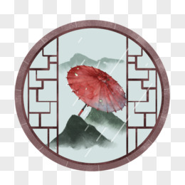 中式窗外下雨场景免抠元素