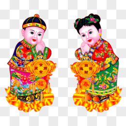 卡通矢量一对兔年戴兔头帽的福娃素材