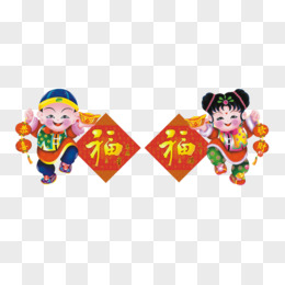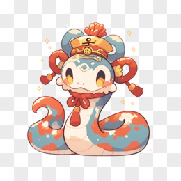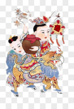 卡通一匹有彩色飘逸丝带和马鞍上有福字的马免抠元素