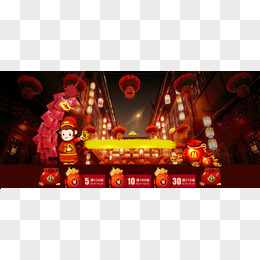 卡通一匹红色奔跑的马身上有着福字花纹免抠元素