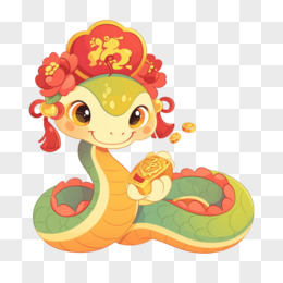 卡通手绘中国马年IP形象拿着福字的马免抠元素