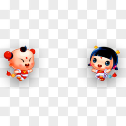 手绘卡通新年一对福娃免抠素材