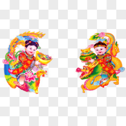 手绘新年童男童女免抠素材