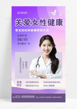 紫色关爱女性健康妇科疾病预防知识直播预告宣传ui海报