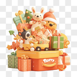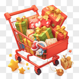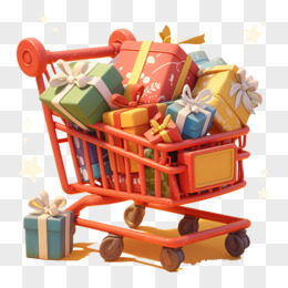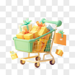 3D素材促销元素绿色购物车和礼盒免抠元素