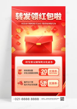 拉新福利福袋金币现金红包拉新奖励引流福利海报