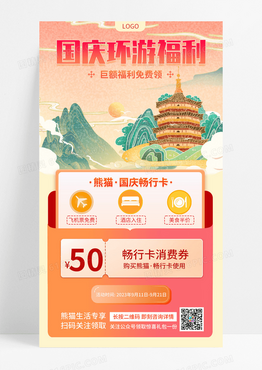活动促销国潮消费券国庆旅游福利活动手机海报手机宣传海报
