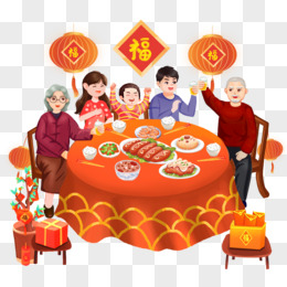 手绘年夜饭团圆免抠插画
