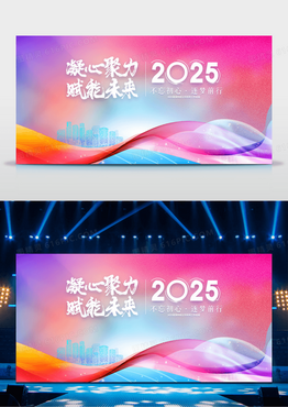 炫彩2025蛇年凝心聚力赋能未来企业年会展板背景