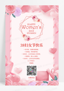 粉色浪漫清新大气企业美丽女人节贺卡38妇女节海报38妇女节贺卡
