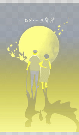 插画风年迈的一对老人元素