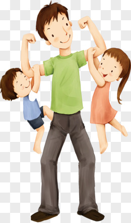 唯美精美父亲节卡通父亲骑自行车带孩子