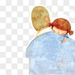 卡通爸爸背着女孩背影免抠元素