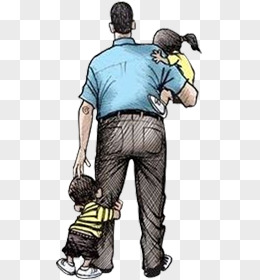 手绘卡通爸爸跟孩子背影插画免抠元素