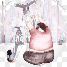 手绘父子背影卡通免抠元素