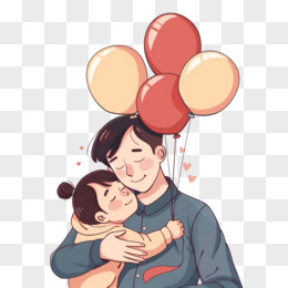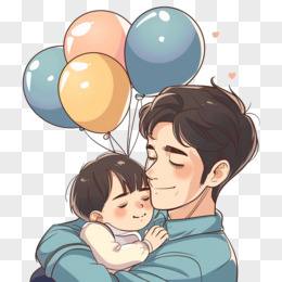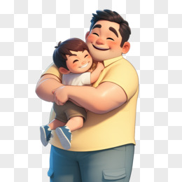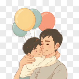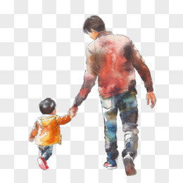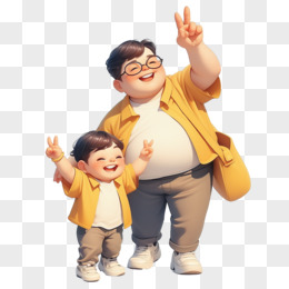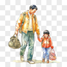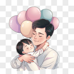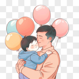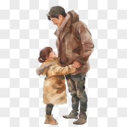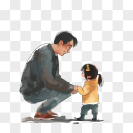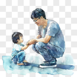 手绘卡通父亲与孩子翻看相册互动免抠元素