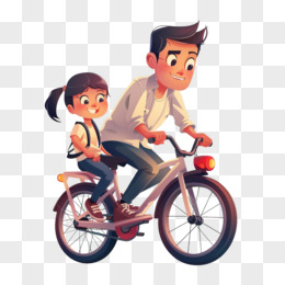 爸爸骑着自行车载着儿子父子互动免抠元素