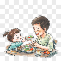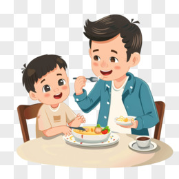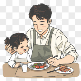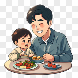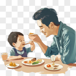 卡通插画风爸爸与孩子一起阅读免抠元素