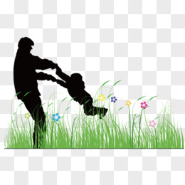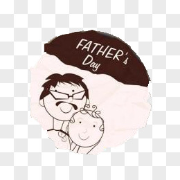 手绘卡通爸爸跟孩子背影插画免抠元素