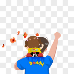 卡通爸爸和孩子背影免抠元素