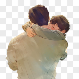 插画风父亲节父亲抱着孩子背影免抠元素