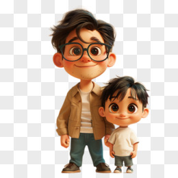 卡通插画风爸爸与孩子一起阅读免抠元素