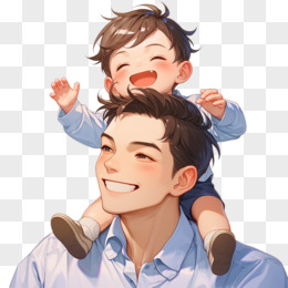 卡通手绘女儿骑在超人爸爸脖子上人物免抠素材