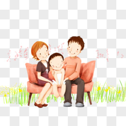 手绘卡通爸爸带娃和女儿看书插画免抠元素
